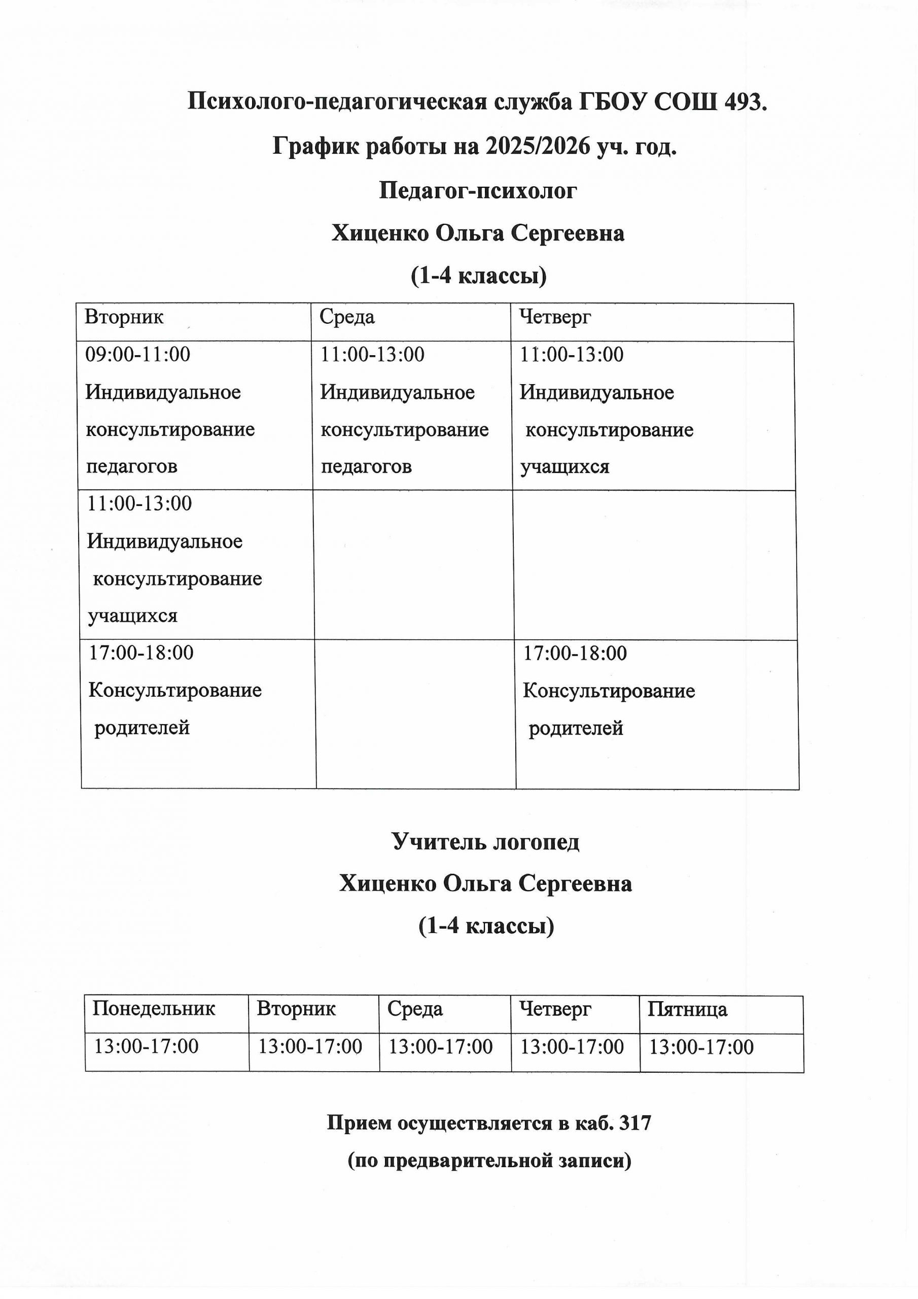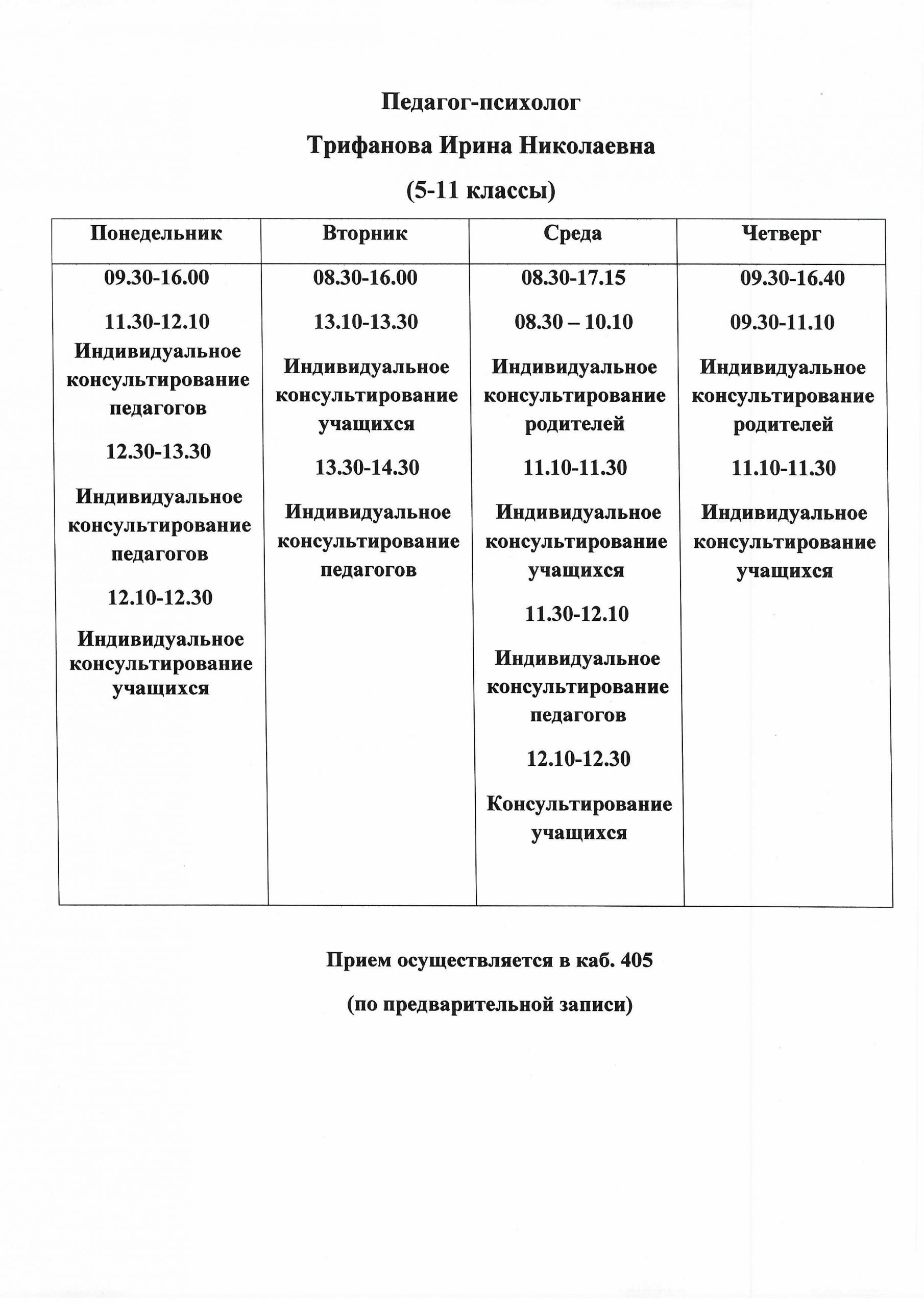 Режим работы психолого-педагогической службы